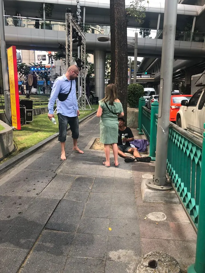 เป็นอีกคลิปที่ชาวโซเชียลเห็นต่างชื่นชมและประทับใจ สำหรับวินาทีชาวต่างชาติเสียสละรองเท้าให้กับคนเร่ร่อนจนต้องเดินเท้าเปล่า พร้อมกับบริจาคเงินส่วนตัว ซึ่งภาพและคลิปต่อไปนี้ถูกเผยแพร่จากเฟซบุ๊คคุณ Songphol Boonyong เมื่อวันที่ 1 กุมภาพันธ์ 2562 พร้อมกับเรื่องราวที่เกิดขึ้นดังข้อความด้านล่าง