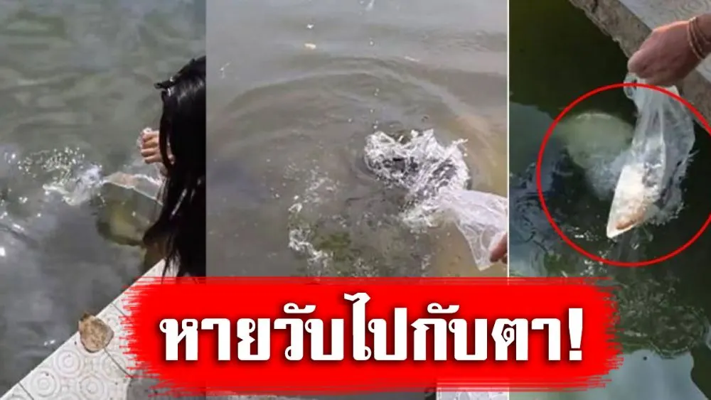 มาทำบุญแต่ได้บาปไปเต็มๆ หนุ่มโพสต์คลิป ไปปล่อยปลา ยังไม่ลงถึงน้ำ หายวับเกลี้ยงถุง(คลิป)