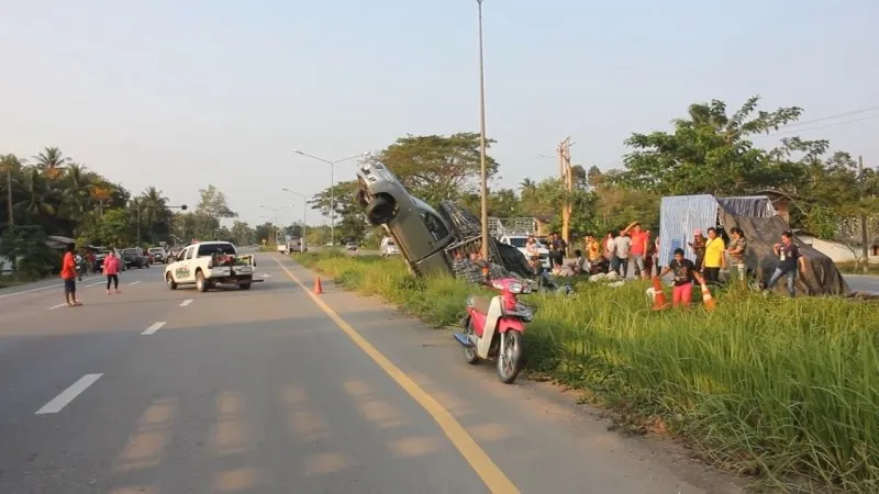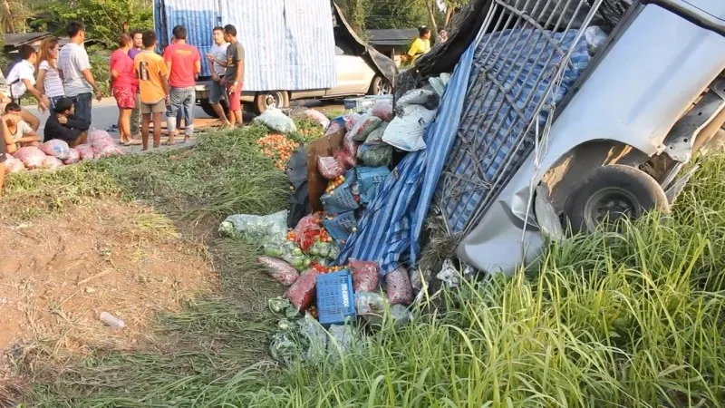 ที่เกิดเหตุอยู่ใกล้กับจุดกลับรถร่องกลางถนนพบรถยนต์กระบะยี่ห้อโตโยต้า ตอนเดียวไฮลักแชมป์ สีเทา ทะเบียน บม 3114 ชุมพร อยู่ในสภาพหัวเชิดชี้ฟ้ากระบะหลังกรรทุกผักสวนครัวนานาชนิดมาเต็มคันบางส่วนกระจัดกระจายตกเกลื่อน บนท้องถนนชาวบ้านช่วยกันเก็บวางไว้ริมถนน ขณะเดียวกันทำให้รถติดยาวกว่า 1 กม. หน่วยกู้ภัยจึงให้สัญญาณระบายการจราจร