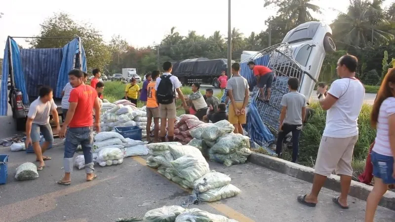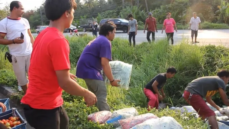 กระบะขนผักมาเต็มคัน จู่ๆรถเสียหลัก ยางระเบิด ชาวบ้านรีบมารุม เห็นสิ่งที่ทำ น้ำตาไหลเลย