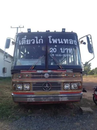 เจ้าของร้านไอเดียบรรเจิดสร้างความแปลกใหม่ไม่ใช่แค่ร้านก๋วยเตี๋ยวแบบที่เคยเห็นทั่วไป แต่เป็นร้านที่นำรถบัสเก่ามารีโนเวตใหม่ แบ่งพื้นที่สำหรับหน้าร้านและที่นั่งให้กับลูกค้าไว้บนรถคันเดียว ร้านนี้มีชื่อว่า “เตี๋ยวไก่-โพนทอง” ตั้งอยู่ที่จังหวัดร้อยเอ็ด ธุรกิจเล็กๆ เริ่มต้นได้ 4 เดือนกว่า มี คุณต้น-วิชัย เรือนรสอายุ 32 ปี เป็นเจ้าของกิจการ