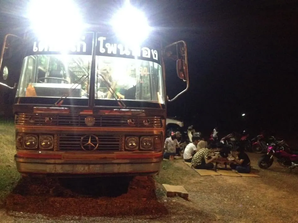 ก่อนเล่าต่ออย่างอารมณ์ดีว่า บังเอิญขับรถผ่านจังหวัดกาฬสินธุ์มีรถบัสเก่าจอดขายอยู่ข้างถนน เห็นแล้วชอบ จึงตัดสินใจกู้เงินมาซื้อรถบัสราคาไม่เบา 160,000 บาท นำมารีโนเวตใหม่เป็นหน้าร้าน และที่นั่งสำหรับลูกค้า ออกแบบและทำระบบไฟเอง ส่วนพวกงานสเตนเลสให้พี่ที่รู้จักทำให้