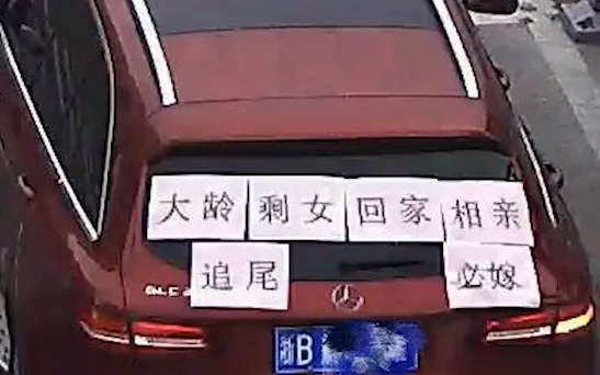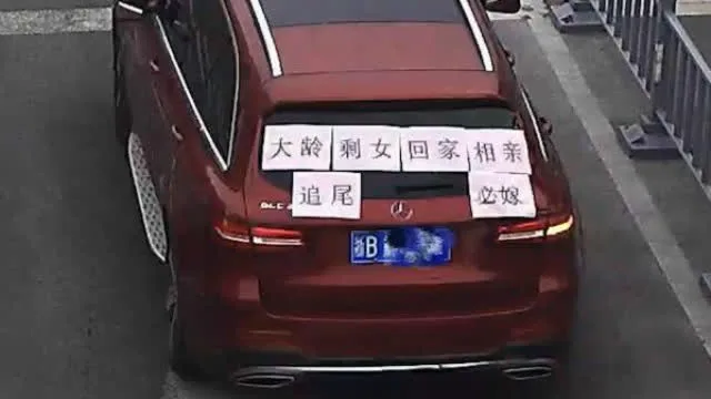 เมื่อวันที่ 1 ก.พ. ที่ผ่านมา ซึ่งเป็นช่วงเวลาแห่งการเดินทางกลับบ้านของชาวจีนเพื่อฉลองปีใหม่ร่วมกับครอบครัว ที่เมืองหนิงโป มณฑลเจ้อเจียง เจ้าของรถเบ๊นซ์คันหนึ่งนำกระดาษพิมพ์ข้อความมาแปะไว้ที่หลังรถ ซึ่งเป็นที่สะดุดตาของผู้ใช้รถใช้ถนนอย่างมาก โดยข้อความเขียนไว้ว่า “สาวโสดอายุเยอะขับกลับบ้านไปดูตัว ใครจิ้มตูดมาจะแต่งงานด้วย”
