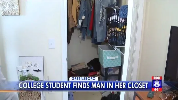 พอผ่านไป 1 วัน เธอกลับได้เสียงแปลกๆจากในตู้เสื้อผ้าอีกแล้ว เสียงเหมือนมีบางอย่างอยู่ในนั้น เธอเลยลองตะโกนพูดขึ้นมาว่า "ใครอยู่ในนั้น" แล้วก็มีเสียงตอบกลับมาว่า "ผมเอง โอ้ ผมชื่อ Drew" จากนั้นเธอก็โทรแจ้งความกับตำรวจ ตำรวจจะมาถึงที่เกิดเหตุละทำการจับกุม Andrew Clyde Swofford ชายวัย 30 ปีคนดังกล่าว ซึ่งเขานั้นก็ยังไม่ยอมบอกว่าทำไมถึงได้แอบเข้ามาในห้องนศ.คนนี้ แต่ก็ยังโชคดีที่ไม่ได้เกิดเรื่องร้ายๆขึ้นกับเธอนั้นเอง !