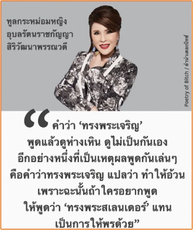 อย่าลืม ทูลกระหม่อม ทรงย้ำ ใช้คำว่าทรงพระสเลนเดอร์ แทน ทรงพระเจริญ