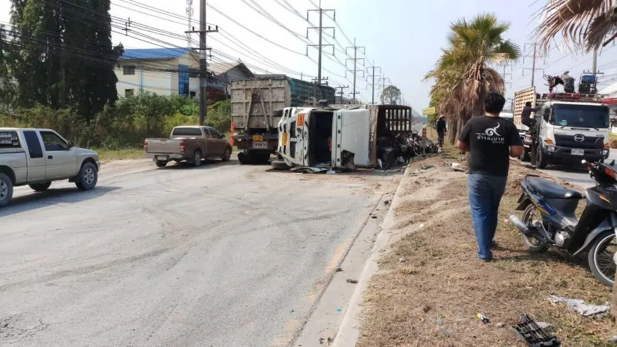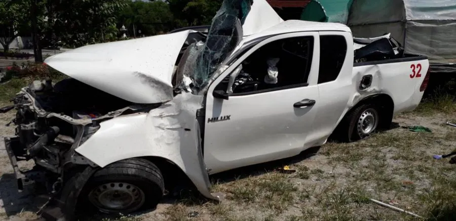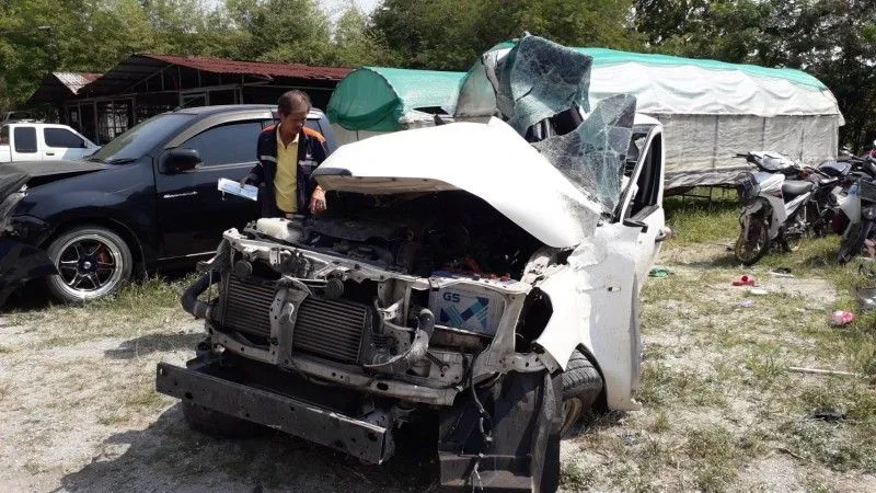จากการตรวจสอบที่เกิดเหตุพบรถกระบะขึ้นไปอยู่เกาะกลางถนน สภาพรถพังยับทั้งคัน ใกล้กันพบรถบรรทุกพ่วงแม่ลูก18 ล้อ ที่บรรทุกเศษเหล็กอัดก้อนมาเต็มคันรถ ส่วนหัวจอดอยู่ในฝั่งเลนถนนมุ่งหน้าถนนสุขุมวิท ใกล้แยกนิคมอุตสาหกรรมมาบตาพุด