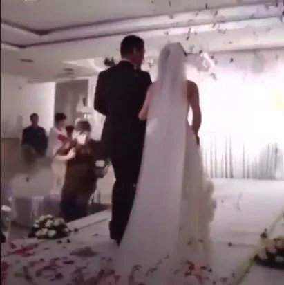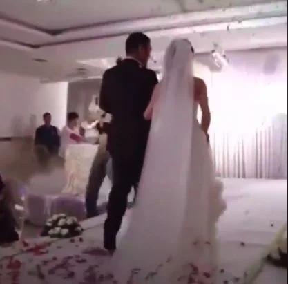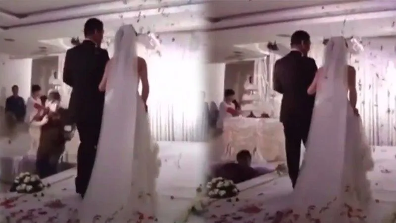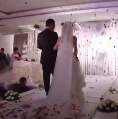 เรียกได้เป็นเหตุการณ์ที่ไม่ได้อยากให้เกิดกับใคร เป็นคลิปของต่างประเทศ ทำเอาชาวเน็ตนั้นฮาลั่นทั้งโลกออนไลน์ ซึ่งเป็นที่รู้กันดีว่าเวลามีงานแต่งงานหรืองานมงคลอื่นๆส่วนมากก็จะจ้างตากล้องเพื่อมาเก็บภาพบรรยากาศภายในงาน เรียกได้ว่าช่วงเวลาที่ดีและจะได้มีภาพดีๆเก็บไว้ จากในคลิปนั้นเจ้าบ่าวเจ้าสาวกำลังเดินขึ้นไปบนเวที ด้วยบรรยาที่แสนจะโรแมนติก บรรดาแขกในงานก็มองโฟกัสไปที่จุดเดียวกันคือวินาทีที่บ่าวสาวนั้นกำลังจะเดินขึ้นเวทีอย่างช้าๆบวกกับเพลงสุกแสนจะโรแมนติก