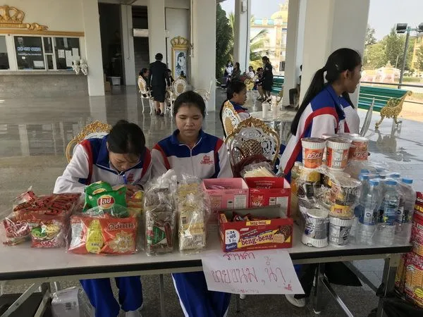 พยาบาลชั้นปีที่ 1 ที่กำลังมีการสอบวัดผลภาคเรียนที่ 1 อยู่ในขณะนี้และยังไม่ได้รับเงินกู้ยืมเรียน จากกองทุนเงินให้กู้ยืมเพื่อการศึกษา หรือ กยศ.พากันนำเอาขนมและน้ำดื่ม มาขายให้กับบรรดา น.ร.และพ่อแม่ผู้ปกครองที่พากันมาสมัครสอบคัดเลือกอยู่ในขณะนี้