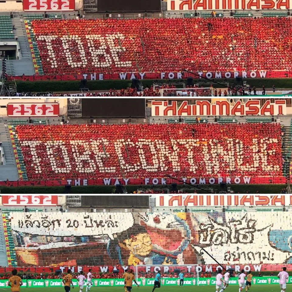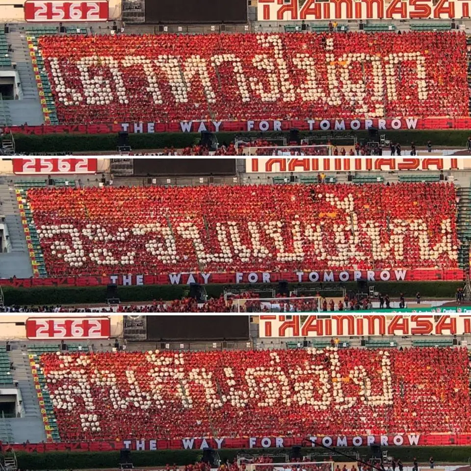 เปิด 13 ภาพการแปรอักษรแบบต่อเนื่อง ชุด "แม่งูเอ๋ย" ของ #TeamThammasat (มีคลิป)