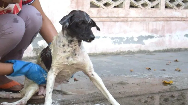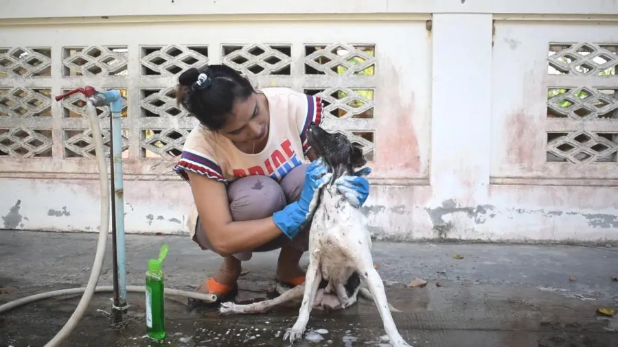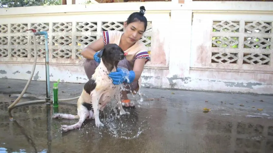 จิตใจงดงาม!! "สาวชาวตรัง" ใช้เวลาวันหยุด อาบน้ำให้น้องหมาตามวัด
