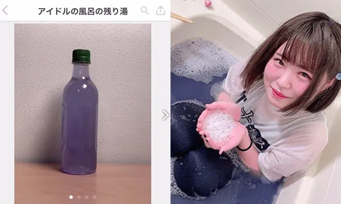 สำนักข่าวต่างประเทศรายงาน โลกโซเชียลมีเดียญี่ปุ่นกำลังให้ความสนใจประเด็นการขายของออนไลน์ต่อยอดรายได้ของกลุ่มศิลปินไอดอลกลุ่มหนึ่ง ที่ได้ประกาศขาย "น้ำในอ่างอาบน้ำ" ที่พวกเธอใช้อาบน้ำแล้ว นำมาบรรจุใส่ขวด พร้อมกับประกาศขายให้กับแฟนๆ และผู้ที่สนใจ ตั้งราคาไว้สูงถึงขวดละ 1 แสนเยนเลยทีเดียว