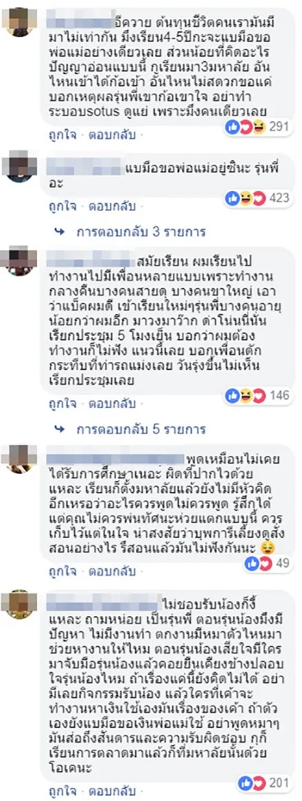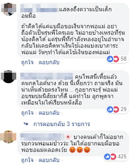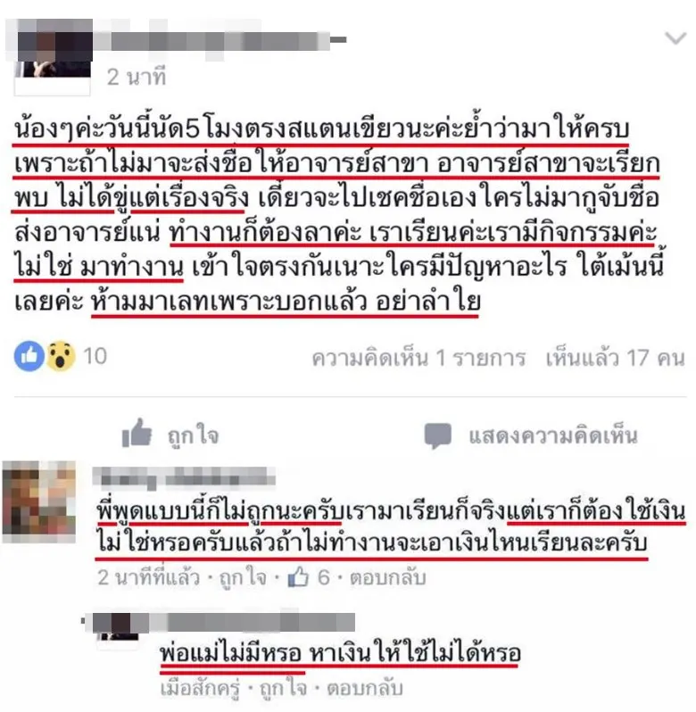 เท่านั้นยังไม่พอ รุ่นพี่คนเดิมได้มาถามต่อว่า "พ่อแม่ไม่มีเหรอ หาเงินให้ใช้ไม่ได้เหรอ" เกิดไฟลุกพรึ่บทั่วโซเชี่ยลในทันที ชาวเน็ตกระหน่ำเม้นต์ด่ากันไม่ทันเลยทีเดียว