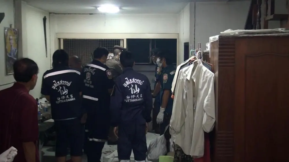 ที่เกิดเหตุพบบ้านเป็นลักษณะทาวน์เฮ้าส์ 2 ชั้น ปลูกติดกันหลายหลัง บริเวณประตูลูกกรงหน้าบ้าน และประตูมุ้งลวดภายในบ้าน ถูกล็อคจากด้านใน เจ้าหน้าที่ช่วยกันงัดประตู ภายในห้องครัวหลังบ้าน พบร่างผู้เสียชีวิต เป็นชาย 1 ราย สภาพศพนั่งพิงกับกำแพง สภาพสวมใส่เสื้อคอกลมสีน้ำตาล ใส่กางเกงในสีดำเพียงตัวเดียว ทราบชื่อ นายณัฏฐวุฒิ รัตนวราหะ อายุ 40 ปี
