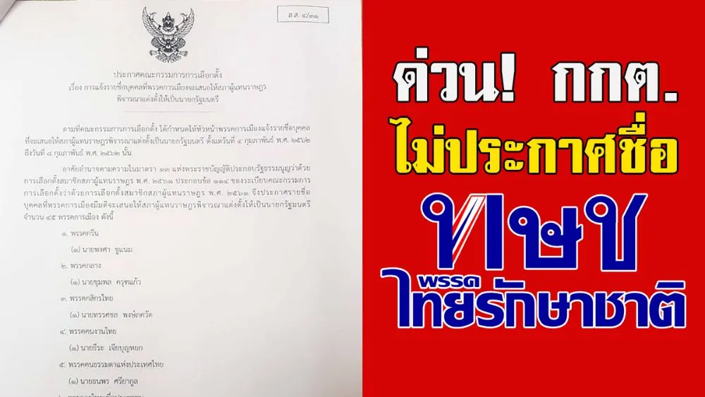 BREAKING : ด่วน!! กกต.ยังไม่รับรองการเสนอชื่อนายกฯ ของพรรคไทยรักษาชาติ