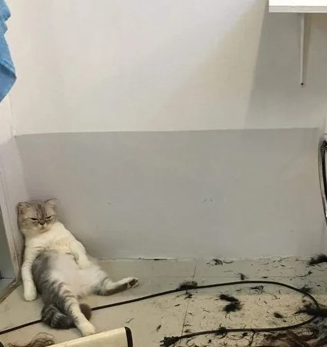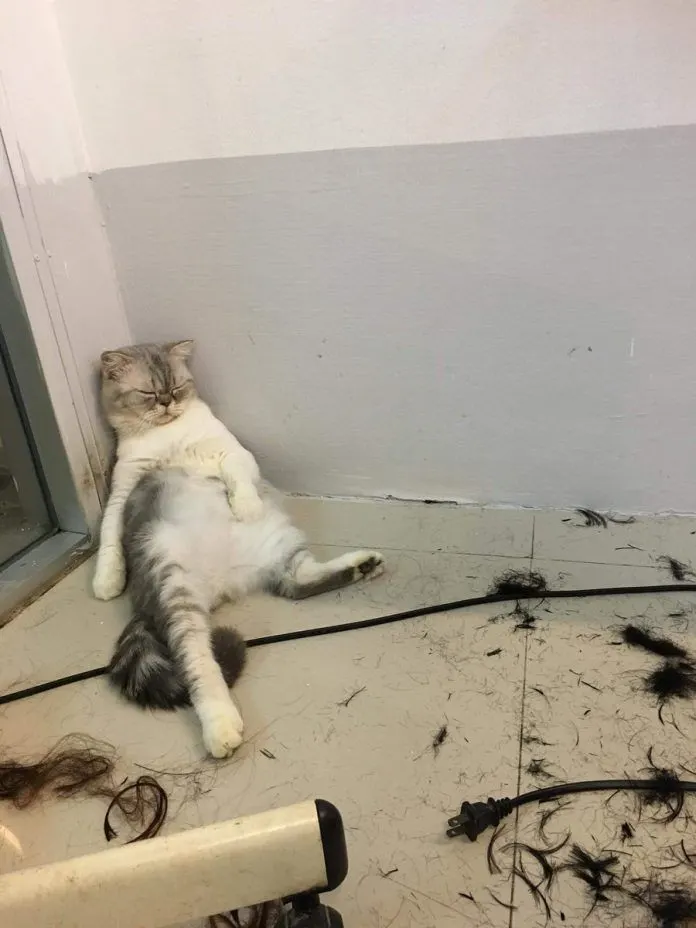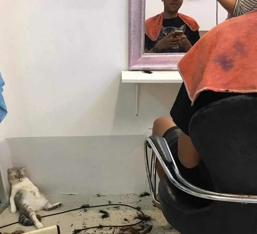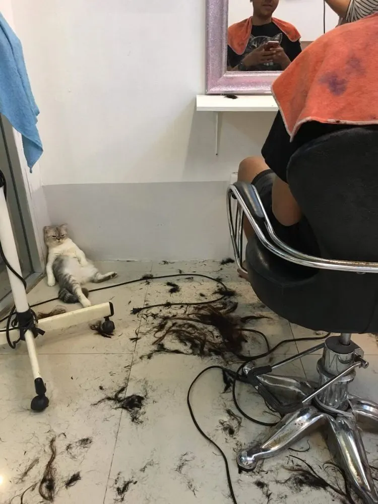 เหมียวสุดเซ็งหลังถูกพ่อหลอกว่าจะพามาเที่ยว แต่พอถึงเวลากลับพามานั่งรอตัดผมเป็นชั่วโมงจนหลับ