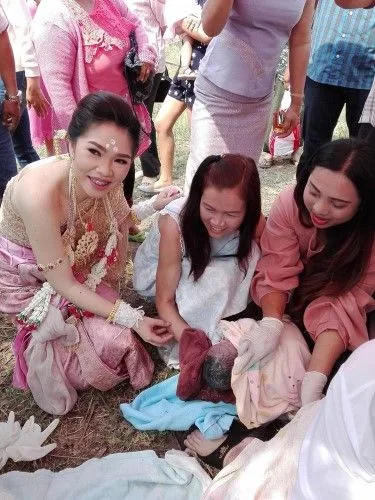 ขณะเดียวกัน น.ส.มยุรี เจ้าสาว และนายณัฐพงษ์ เจ้าบ่าว พร้อมเพื่อนๆ มาดูเหตุการณ์คลอดฉุกเฉินของเพื่อน ทุกคนต่างแสดงความดีใจ รวมทั้งแขกที่มาร่วมงานต่างแสดงความยินดี โดยพูดเป็นเสียงเดียวกันว่า ถือเป็นฤกษ์ดีมหามงคลของงานแต่งงาน ที่มีเด็กทารกแรกคลอด โผล่ลืมตาดูโลกกลางงานแต่งและเป็นโชคดีของเจ้าบ่าวเจ้าสาว