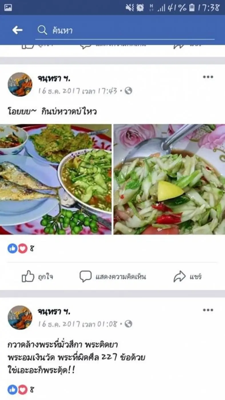 โดยเณรรูปดังกล่าว ยังได้โพสต์ภาพฉันอาหาร ตำแตง ในเวลาเย็น สิ่งปกติแล้ว พระและเณรย่อมไม่ฉันอาหารหลังเที่ยง นอกจากนี้ เณรรูปนี้เคยโพสต์เฟซบุ๊กแสดงความคิดเห็นเกี่ยวกับปัญหาในวงการพระพุทธศาสนาด้วยว่า