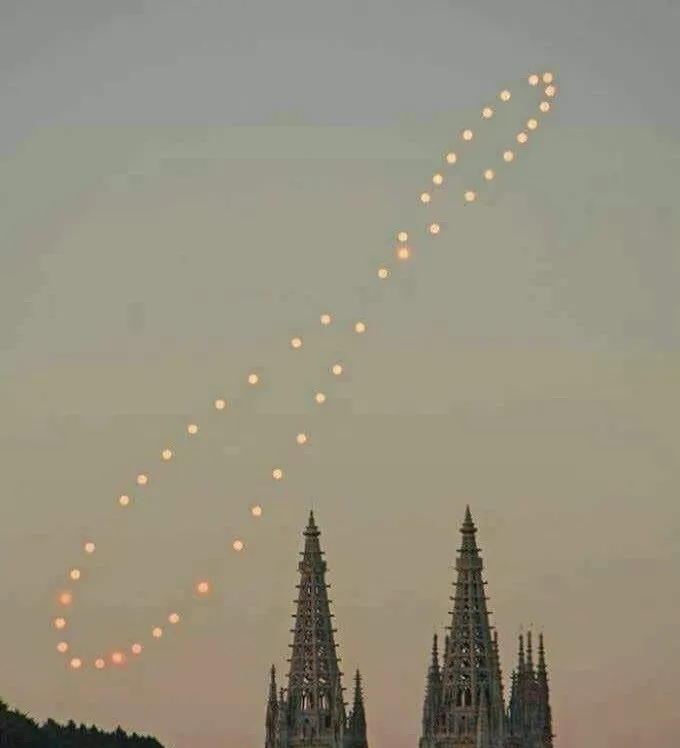 การถ่ายรูปดวงอาทิตย์ จำนวน 48 รูปจากจุดจุดเดียวกัน เวลาเดียวกัน ถ่ายสัปดาห์ละครั้ง จำนวน 48 สัปดาห์ จุดสูงสุดของดวงอาทิตย์ คือช่วงเวลาฤดูร้อน จุดต่ำสุดของดวงอาทิตย์ คือช่วงเวลาฤดูหนาว ลักษณะสุดท้ายออกมาเหมือนสัญลักษณ์อินฟินิตี้