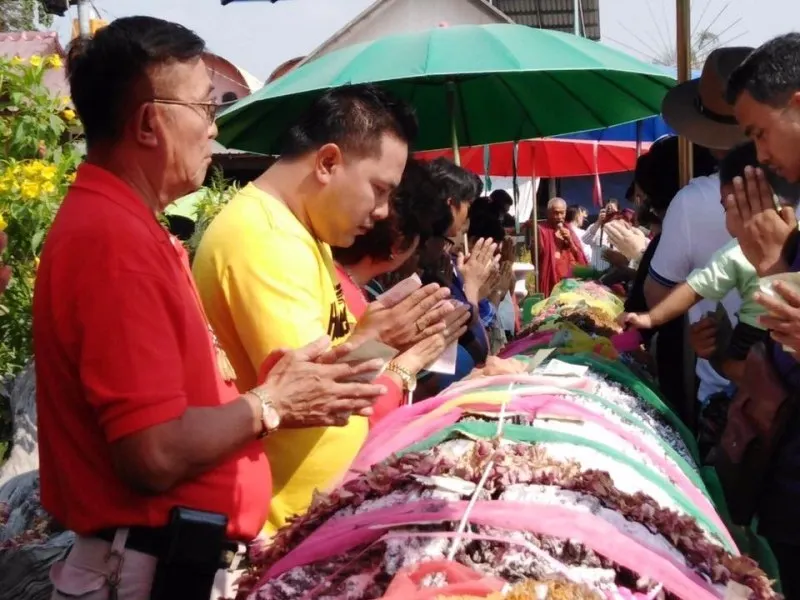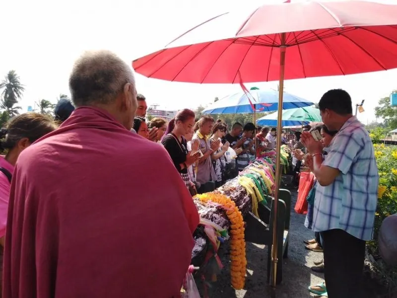 เมื่อวันที่ 15 ก.พ. ภายในวัดสว่างอารมณ์ แคแถว ต.ขุนแก้ว อ.นครชัยศรี จ.นครปฐม ชาวบ้านและบรรดานักเสี่ยงโชคเดินทางมากราบขอพรและหาเลขเด็ดจากต้นตะเคียนที่ขึ้นชื่อว่ามีความศักดิ์สิทธิ์เป็นอย่างยิ่ง บรรดานักเสี่ยงโชคที่เดินทางมาวัด จะต้องเข้าไปรุมล้อมกราบไหว้ขอโชคลาภกันเนืองแน่น