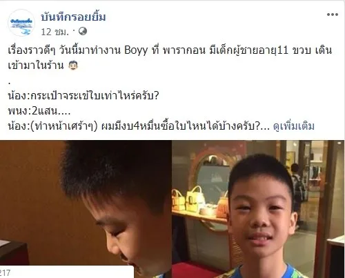 เรื่องราวดีๆ วันนี้มาทำงาน Boyy ที่ พารากอน มีเด็กผู้ชายอายุ 11 ขวบ เดินเข้ามาในร้าน