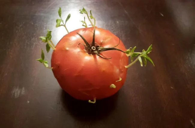 แม้ว่าจะตั้งอยู่ข้างนอกนำไปเพาะแต่มะเขือเทศเริ่มงอกเป็นต้นออกมา
