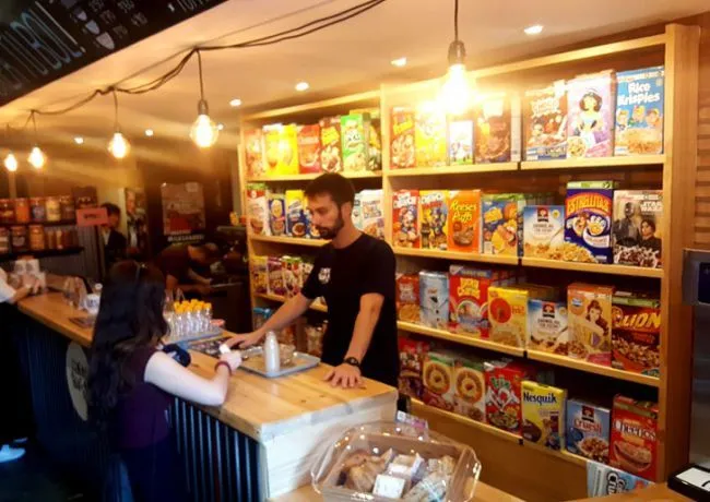 ที่สเปน มีขายซีเรียลบาร์เป็นถ้วยๆ เลือกได้ว่าจะกินรสไหนบ้าง