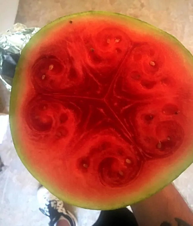 เคยเห็นแตงโมที่ผ่าออกมาแล้วเป็นลวดลายอย่างนี้บ้างไหม