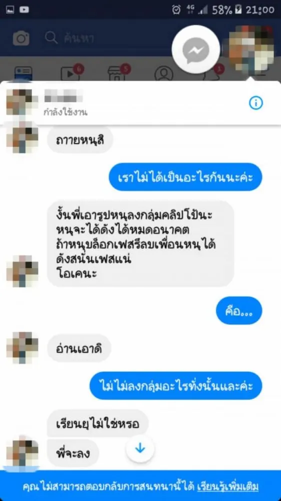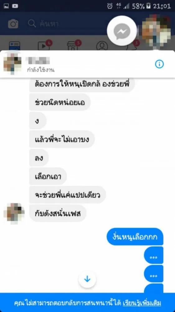 ดังสนั่นเฟส! เด็กหญิง 14 ถูกชายทักมาขอให้ช่วยเปิดกล้องทำให้หน่อย ลั่นถ้าไม่ทำ จะเอาคลิปลงกลุ่ม