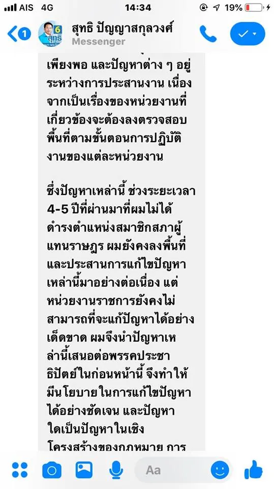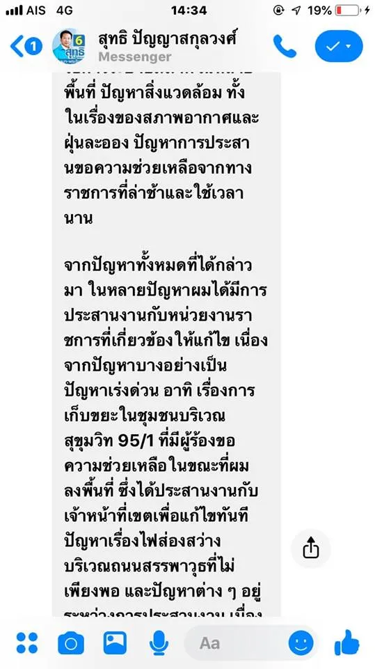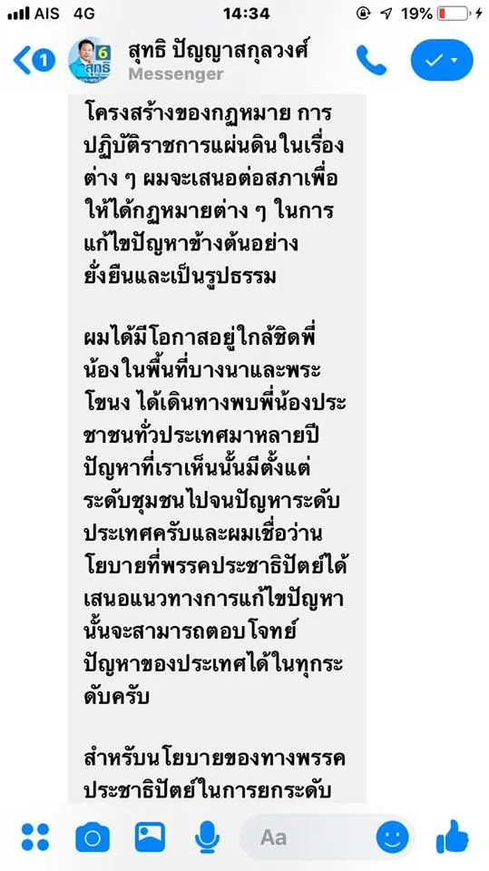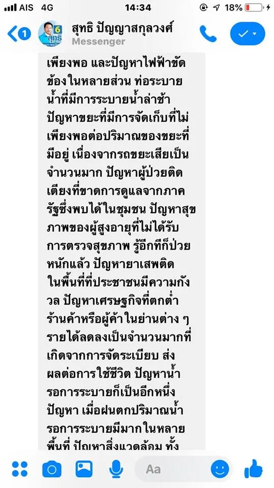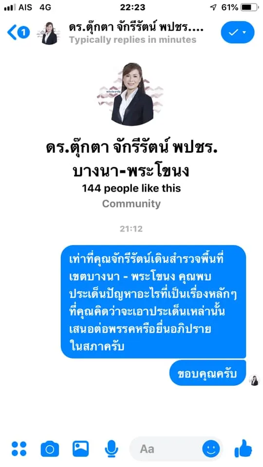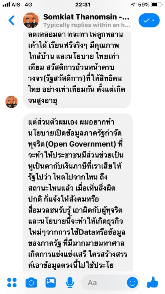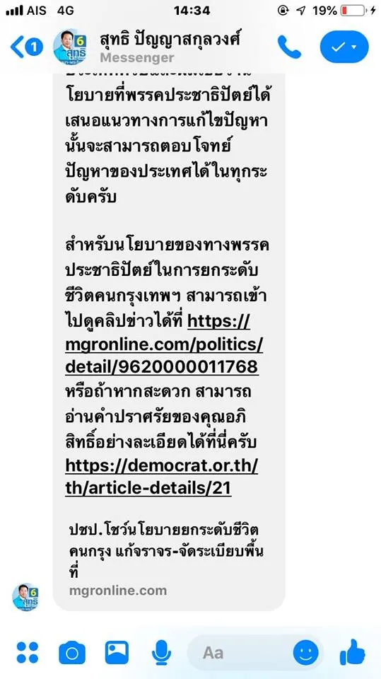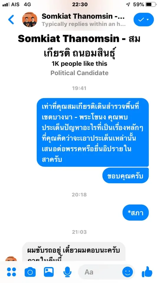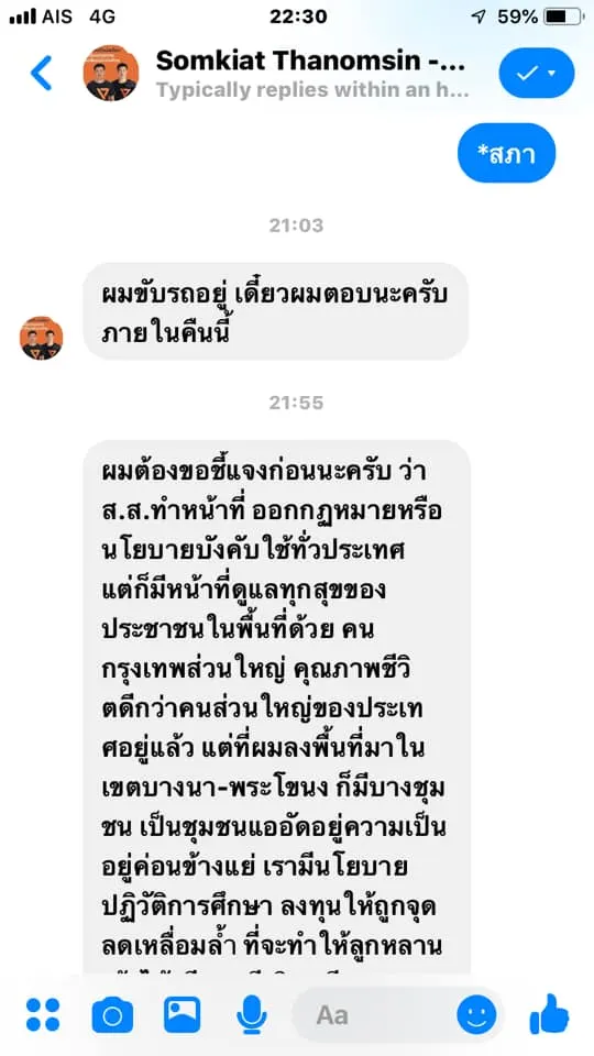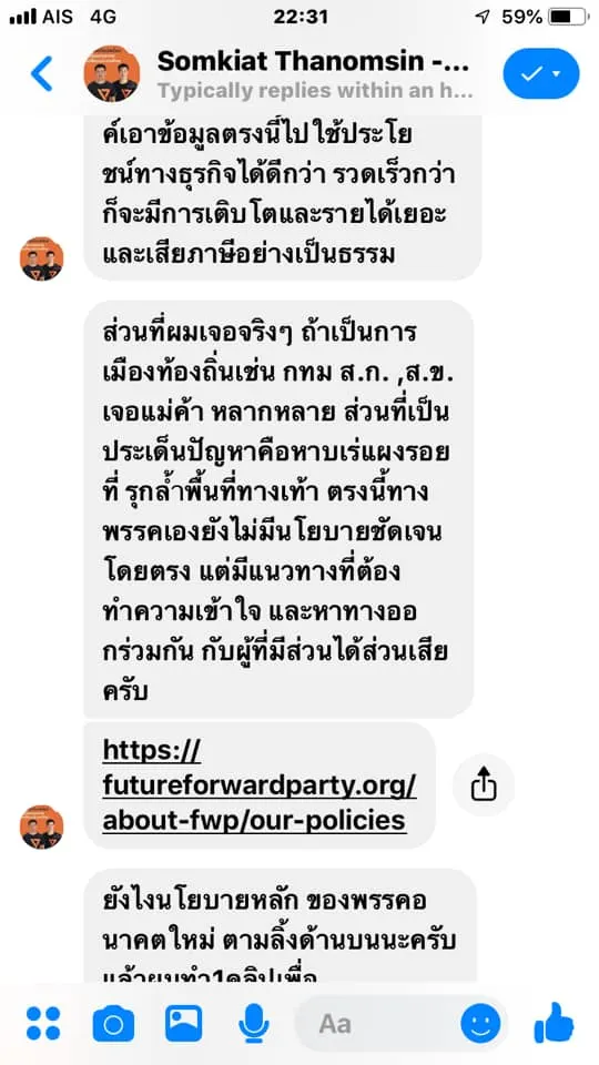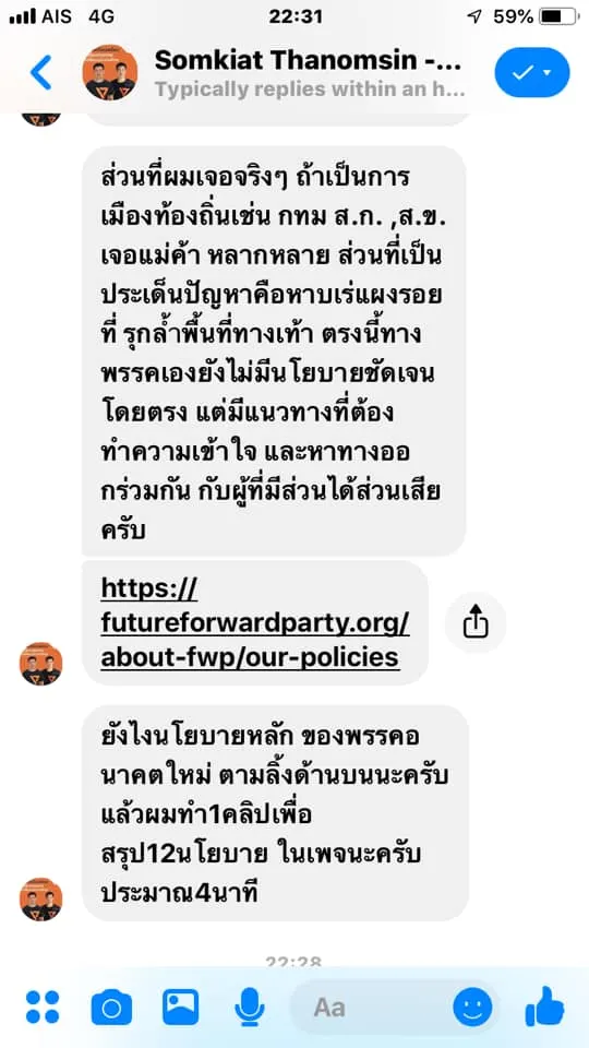 ลอง Direct message ไปถามนโยบายของผู้สมัคร สส ในเขตดู ผลลัพธ์คือ
