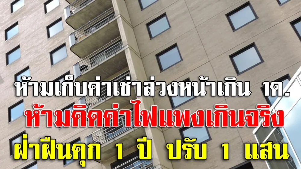 หยุดเอาเปรียบ!! กฎหมายใหม่"ห้ามเจ้าของหอพักเก็บค่าเช่าล่วงหน้าเกิน 1 เดือนและห้ามเก็บค่าน้ำ-ค่าไฟแพงเกินจริง ฝ่าฝืนมีโทษถึงจำคุก 1 ปี ปรับ 1 แสนบาท