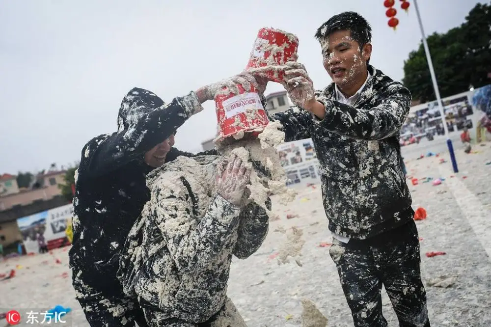 ชมภาพที่ถูกบันทึกไว้เมื่อวันอาทิตย์ที่ผ่านมา (17 ก.พ.) ของบรรยากาศเทศกาล "ปาเต้าหู้” ของชาวบ้านในเมืองชิงหย่วน อำเภอฝูกาง มณฑลกวางตุ้ง ทางตอนใต้ของจีน ที่มีประวัติศาสตร์มายาวนานกว่า 400 ปี โดยเชื่อกันว่าเป็นงานที่จัดขึ้นเพื่อสร้างความสนุกสนาน ผ่อนคลายความตึงเครียดหลังจากการทำงาน และเพื่ออวยพรขอให้ได้ผลผลิตดีและได้รับโชคดีในปีใหม่นี้ด้วย