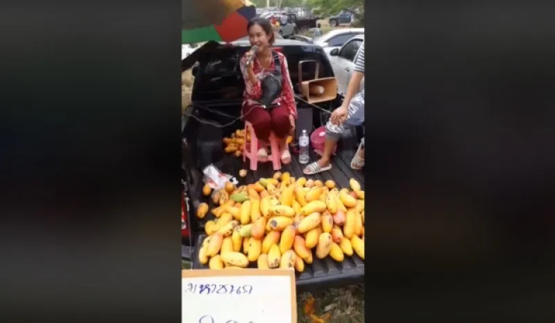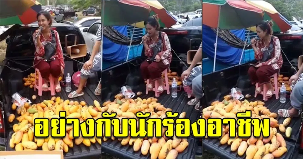 และวันนี้เราก็มีอีกหนึ่งเรื่องราวของแม่ค้าเปิดท้ายขายมะม่วง ทีโชว์สกิลขับร้องเพลงเรียกลูกค้ากับคำพูดเชิญชวน ที่ทำให้ใครต่อใครที่เดินผ่านไปมาก็ต้องหยุดชะงักเอียงหูฟัง และเดินตามเสียงมาจนถึงหน้าร้านแทบทุกราย