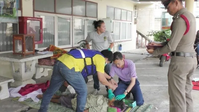 จากการสอบสวนทราบว่าผู้ตายมีโรคประจำตัวเป็นโรคมะเร็งกระดูกและโรคฝี คาดว่าอาการน่าจะกำเริบ จนเกิดอาการช็อค ชักเกร็ง จนเป็นเหตุดังกล่าว ด้าน นางสมมาตร เทศธรรม อายุ 52 ปี ผู้อยู่ในเหตุการณ์ เปิดเผยว่า ตอน 7 โมงเช้า ตนมาเจอกับผู้ตาย ที่หน้าศาลา ปั่นจักรยานมาที่หน้าศาลา เพราะทุกวันพระ ตนและผู้ตายจะมาเจอกันที่วัดทุกครั้ง เพื่อรออาหารที่ชาวบ้านมาทำบุญตักบาตร ถวายพระเสร็จ จะเหลืออาหารเยอะ ก็จะมานำกลับไปกินกับคนในครอบครัว แต่วันนี้ผู้ตาย บ่นว่าแน่นหน้าอก หายใจไม่สะดวก คนที่อยู่ในวัดก็มาช่วยกันบีบนวด ให้ดมยาดม จากนั้นก็ฟุบล้มลง จึงรีบไปดู ก็พบว่าไม่หายใจแล้ว