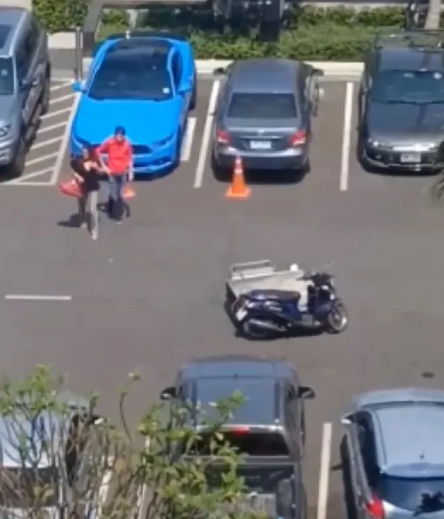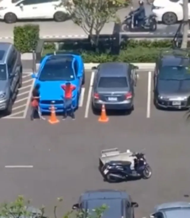 หนุ่มสาวขับรถหรู ลากรถพ่วงคนพิการไปไว้กลางถนน ก่อนเอารถตัวเองไปจอดแทน (คลิป)