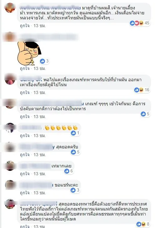 กองทัพไทยต้องเปลี่ยนแปลง ไม่ยึดติดกับยศ เป็นเพียงคนธรรมดาทั่วไปที่ทำงานรับใช้ประเทศชาติ ไม่มีสิทธิไปทำร้ายใคร และอีกเรื่องไอ้พวกที่ชอบนำพลทหารไปรับใช้ที่บ้านนั้นไร้เกียรติ เเละน่าขยะเเขยง via somphot viketgit