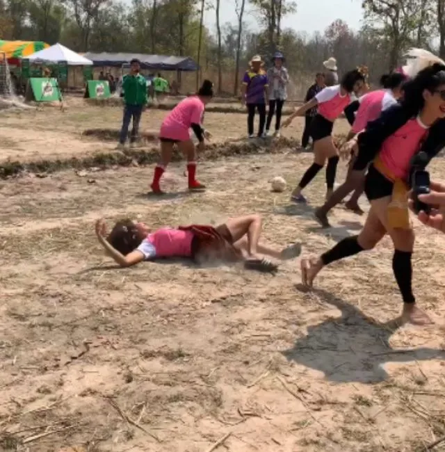 เป็นอีกหนึ่งเรื่องราวที่เรียกสร้างความฮือฮาเป็นอย่างมาก เริ่มขึ้นแล้วสำหรับการแข่งขัน ห้วยไร่คัพครั้งที่ 1 ที่จัดขึ้นโดยนักร้องหนุ่มบ้านนาชื่อดังอย่างก้องห้วยไร่ โดยเป็นการแข่งขันฟุตบอลบนสนามดินกลางทุ่ง แต่มีอีกหนึ่งความฮา เมื่อแก๊งสาวประเภทสอง ได้โชว์ลีลากองเชียร์สุดว้าว ก่อนที่จู่ๆสาวสองที่อยู่ด้านบนจะเสียหลักหล่นลงมาข้างล่าง เพื่อนๆต่างวิ่งหนีแตกกระเจิง ทำเอาฮาลั่นกันทั้งงาน ช่างน่าสงสารจริงๆแม่สาวสองคนนี้