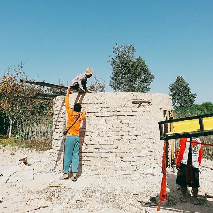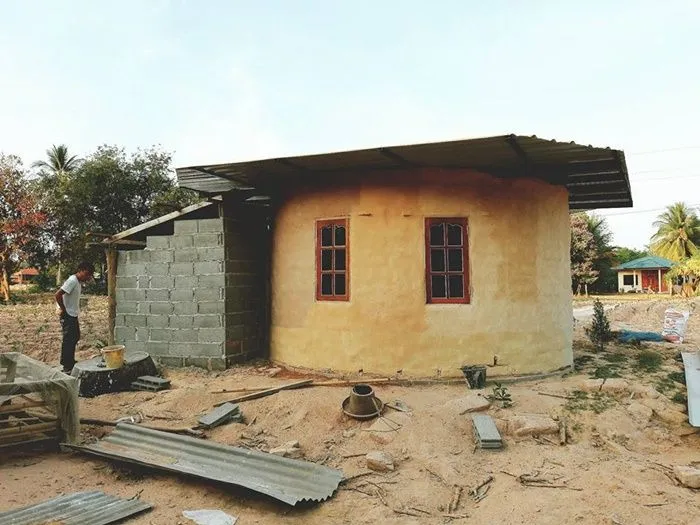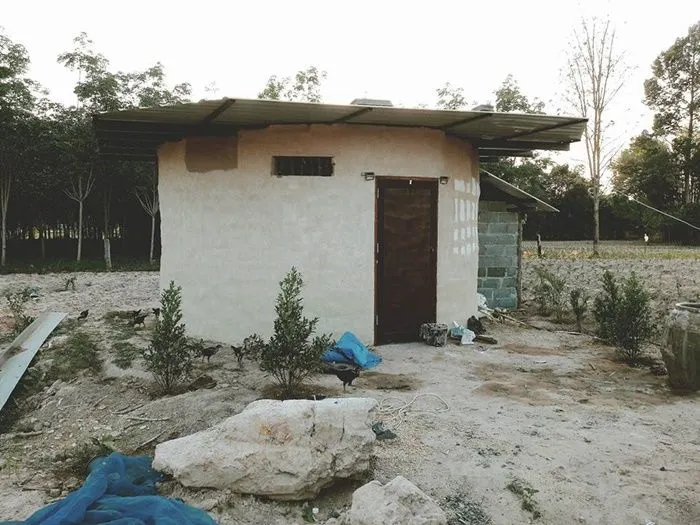ทั้งคู่ดูแบบบ้านดินจากเว็บไซต์ต่างประเทศแบบจึงมาลงตัวที่อาคารหลังเล็ก มีลักษณะคล้ายวิลล่าของรีสอร์ทเพราะมีขนาดกะทัดรัดเพียง 4 X 4 เมตร ห้องน้ำกว้าง 2 เมตรยาว 1.6 เมตร ตอนแรกทั้งสองตั้งใจทำให้หลังใหญ่กว่านี้ แต่เพราะอาศัยการดูจากสื่อโซเชียลและศึกษาวิธีการทำจากยูทูปจึงไม่มั่นใจ ทดลองทำหลังเล็กๆ ก่อนที่ต่อไปคิดจะสร้างหลังใหญ่สำหรับอยู่เอง