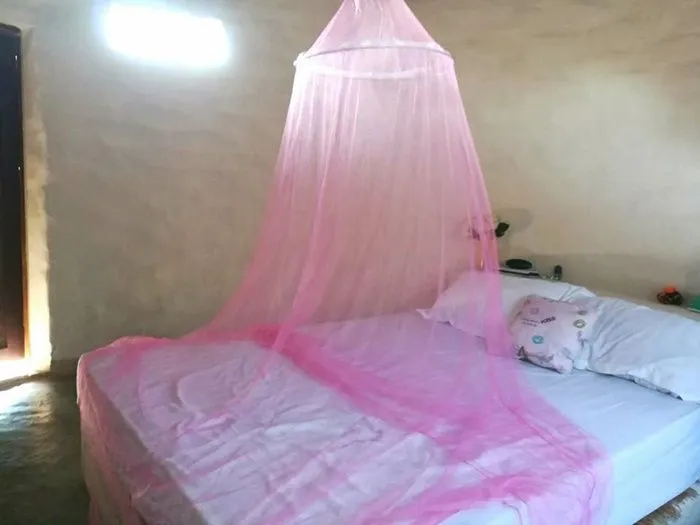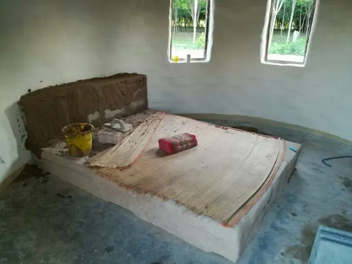 แม้ตอนนี้ภายนอกจะยังไม่เรียบร้อยแต่ภายในที่มีเตียงนอน ชั้นวางทีวีเหมือนการจำลองห้องพักในโรงแรมออกแบบและตกแต่งจนอาศัยได้จริงแล้ว หลังจากทดลองอยู่จริง บ้านดินหลังน้อยหลังนี้ก็ทนแดด ทนฝนใช้งานได้จริง