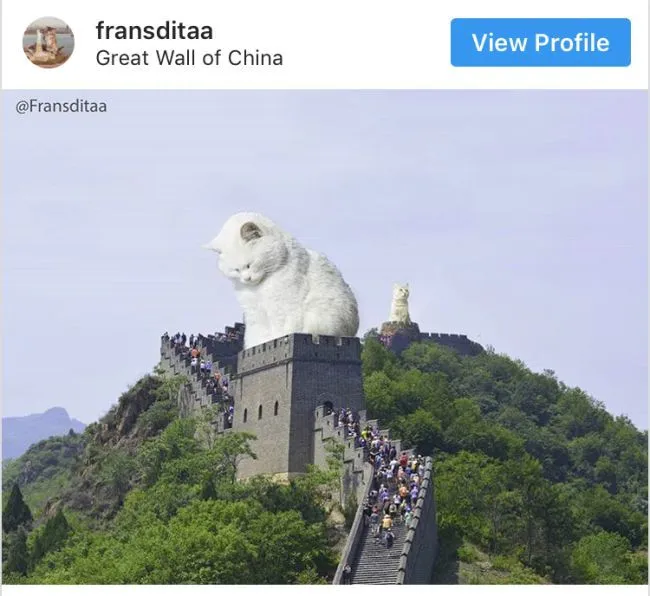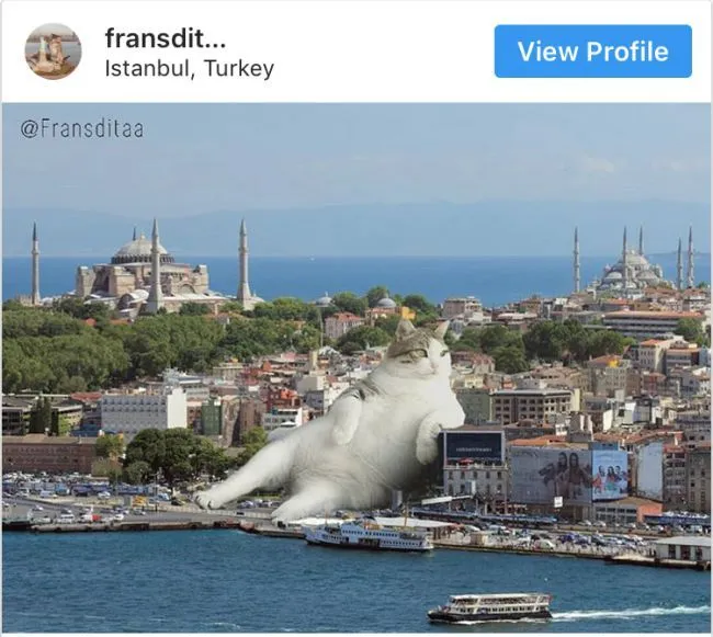 เห็นได้ชัดว่าไม่ว่าแมวขนาดใหญ่แค่ไหนก็ไม่สามารถปิดการจราจรหรือนอนสบายๆบนเรือสำราญจนเหมือนเป็นเรือเด็กเล่น แต่จินตนาการของผู้คนทำให้ใครบางคนเปลี่ยนสิ่งเหล่านั้นให้กลายเป็นความจริง แม้ว่ามันจะเป็นเพียงภาพถ่าย