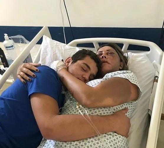 อีเลน สวมกอดกับลูกชายของเธอบนเตียงโรงพยาบาล