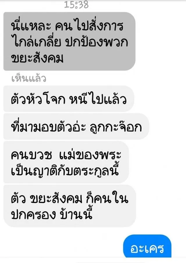 "ก็กูบอกแล้ว แถวนั้นมี 2 ตระกูลแบ่งเค้กกัน ถ้าอยู่บำรุงไม่ได้อยู่ข้างพวกขยะนี่ ก็แปลว่าอีกตระกูลเป็นแบ็คให้มัน เมื่อคืนก็ตาลุงนี่ละมา สน.จะประกันตัวพวกนี่"
