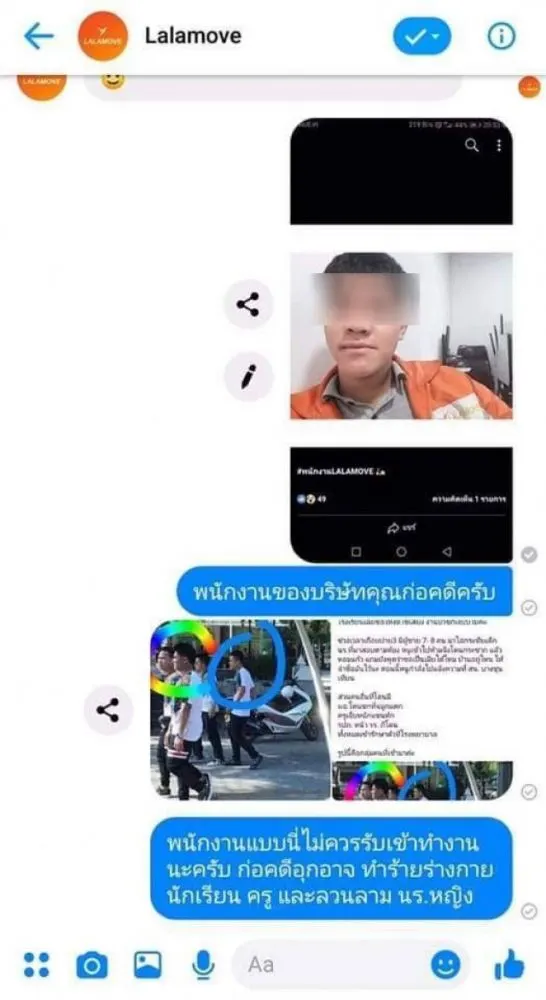 ล่าสุด เฟซบุ๊ก ควาย+Social Smile ได้มีการเผยภาพแชตข้อความที่ได้ส่งตรงไดเรทไปหายังทางบริษัท Lalamove ถึงพนักงานของเขาโดยเป็นหนึ่งในกลุ่มวัยรุ่นที่บุกโรงเรียนมัธยมวัดสิงห์ถึงพฤติกรรมของพนักงาน โดยทางบริษัทได้ตอบกลับว่า