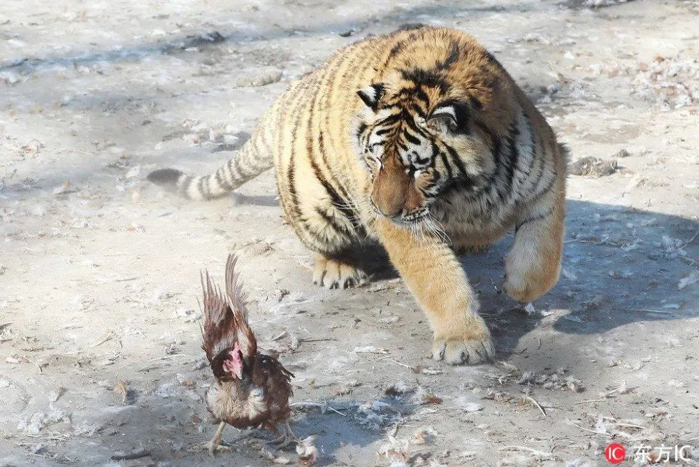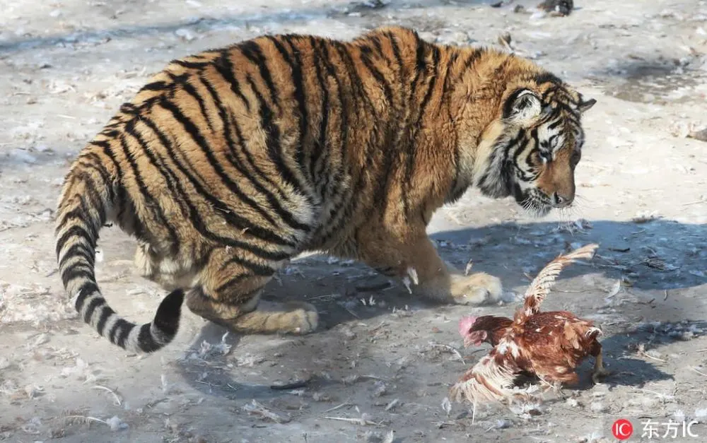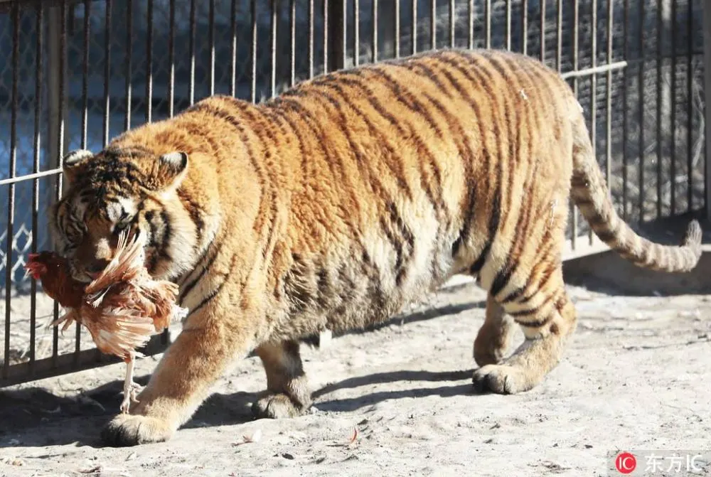 ชมภาพของเสือไซบีเรียตัวตุ้ยนุ้ย ขณะกำลังก้าวย่างหมายจับไก่เป็นอาหาร และขณะนอนพักอยู่ในสวนเสือไซบีเรียน ในเมืองฮาร์บิน เมืองเอกของมณฑลเฮยหลงเจียง ทางตะวันออกเฉียงเหนือของประเทศจีน ซึ่งชาวเน็ตหลายคนต่างลงความเห็นว่ามันคงจะใช้เวลาไปกับการกินอาหารและการพักผ่อนช่วงตรุษจีนมากไปหน่อย หุ่นจึงออกมาอ้วนพลุ้ยอย่างที่เห็น