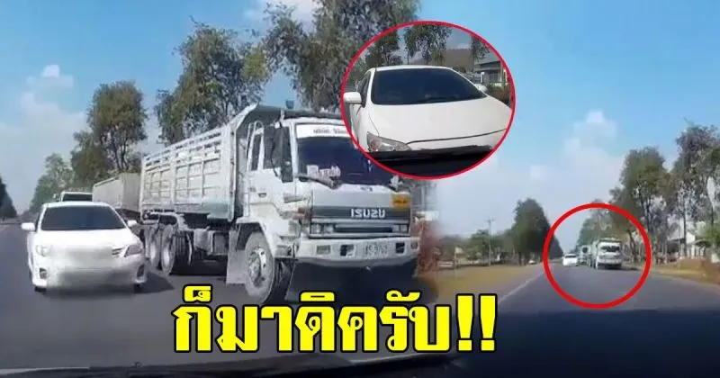 ก็มาดิครับ รถเก๋งขาว พยายามเเซงสวนเลน แต่ไม่พ้น สุดท้ายเจอของจริงเข้าให้ (คลิป)