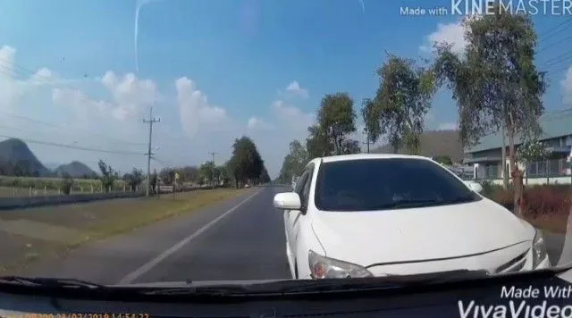 เป็นอีกหนึ่งคลิปที่ชาวเน็ตแห่แชร์ และให้ความสนใจกันเป็นจำนวนมาก เมื่อมีผู้ใช้เฟสบุ๊คชื่อ เฮีย ได้ออกมาโพตส์คลิปพร้อมทั้งได้ระบุข้อความว่า....ถ้าหากจะขอลองคุยกับเธอได้ไหม #ใครจะบอกว่าเบี่ยงหลบก็จบแล้วกรุณาอยู่เงียบๆไอ้-ัส ซึ่งคลิปดังกล่าวเป็นคลิปรถเก๋งสีขาวคันหนึ่งพยายามเหยียบเเซงรถบรรทุก18ล้อ ที่ขับมาติดกัน2 คัน เเต่ทว่า เเซงไม่พ้น เจอกับรถที่ขับมาเลนปกติ สวนมาอย่างจัง ซึ่งก็โทษรถเจ้าของคลิปกล้องหน้ารถไม่ได้ ว่าไม่ยอมหลบให้ เพราะเก๋งขาวผิด ขับมาผิดเลนเอง เอาเป็นว่าเราไปชมคลิปด้านล่างกัเลยดีกว่าจ้า