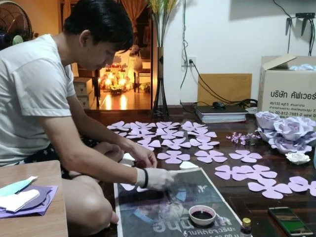 ส่วนอันที่ลุ้นที่สุดคือดอกกุหลาบใหญ่ ซึ่งก่อนหน้าที่จะทำไม่รู้เลยว่าขนาดจริงจะใหญ่แค่ไหน โดยทำตามคลิป https://www.youtube.com/watch?v=EbSOKKW7ZFQ ล้วนๆ ซึ่งขนาดจริงใหญ่มากกก