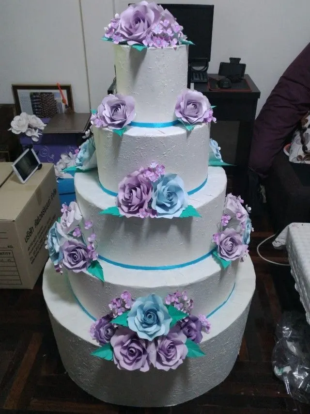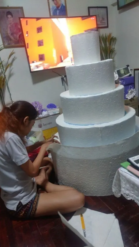 7. เค้กมงคลจากกระดาษ ด้วยความที่สอบถามราคาเช่าเค้กปลอมตามเพจต่างๆมีราคาค่อนข้างสูง เลยตัดสินใจที่จะทำเค้กกันเองอีกแล้วจ้าาาา จะเป็นยังไงมาดูกัน ^^