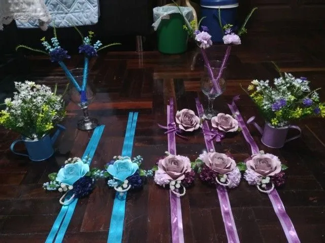 ใช้ดอกไม้กระดาษและดอกไม้ปลอมผสมกันที่ออกมาแล้วเพื่อนเจ้าสาวชอบกันทุกคนดีใจมากกกกก
