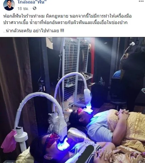 เตือนคนที่อยากมีรอยยิ้มที่สวยงามโดยฟันขาวน่ามอง แล้วทำการฟอกฟันแต่มองหาร้านฟอกราคาถูก คุณหมอได้ออกมาเตือนหลังจากที่มีการเผย สาวฟอกสีฟันในร้านทำผมโดยเปิดแบบผิดกฏหมายและไม่ทราบว่าที่ทำนั้นสะอาดไหม แล้วเครื่องมือเป็นเช่นไร