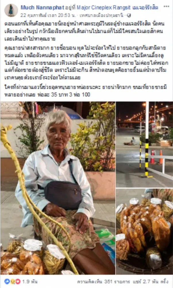 หลังแชร์เรื่องราวออกไปก็มีชาวเน็ต เข้ามาแสดงความคิดเห็นเป็นจำนวนมาก และเผยข้อมูลว่า คุณยายจะขายอยู่ที่บริเวณบนสะพานลอยฝั่งฟิวเจอร์, ข้างเมเจอร์รังสิต ,ปณ.คลอง1 และสะพานแดงคลอง1